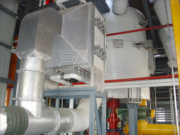 5、蒸脫機(jī)上部的濕式捕集器采用霧化噴頭,把蒸脫機(jī)外排的混合氣體中細(xì)微粕粉最大量的捕集,有利于一蒸的換熱效果,避免了粕粉進(jìn)一步由一蒸進(jìn)入分水箱引起的一系列問題。
